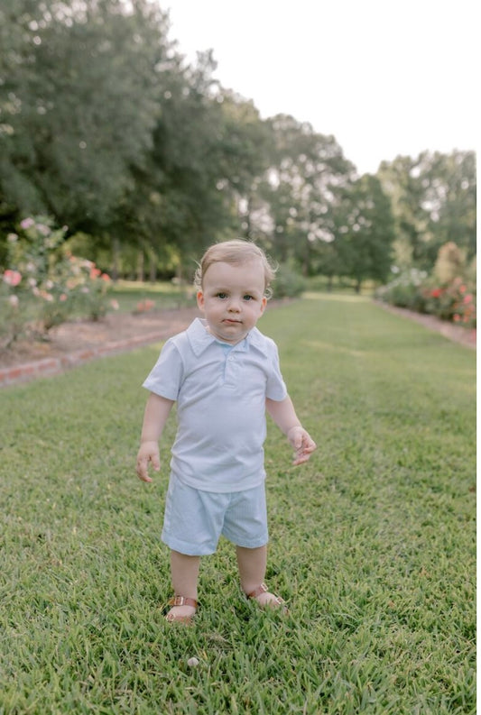 Light Blue Stripe Polo Short Set