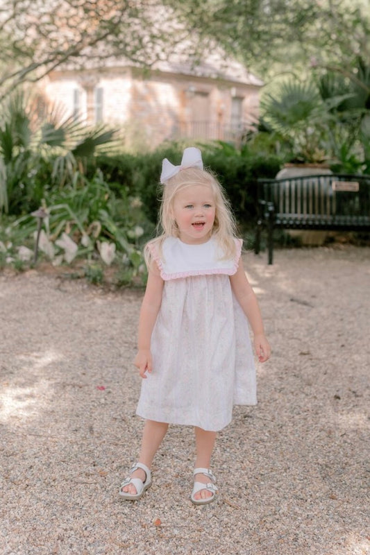 Pink Floral Stripe Square Collar Dress