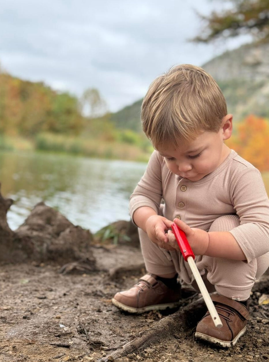 The softest ribbed material in this perfect neutral beige color. This is a great one piece outfit for the cooler months. This also makes an adorable layering piece for vests or button down shirts.